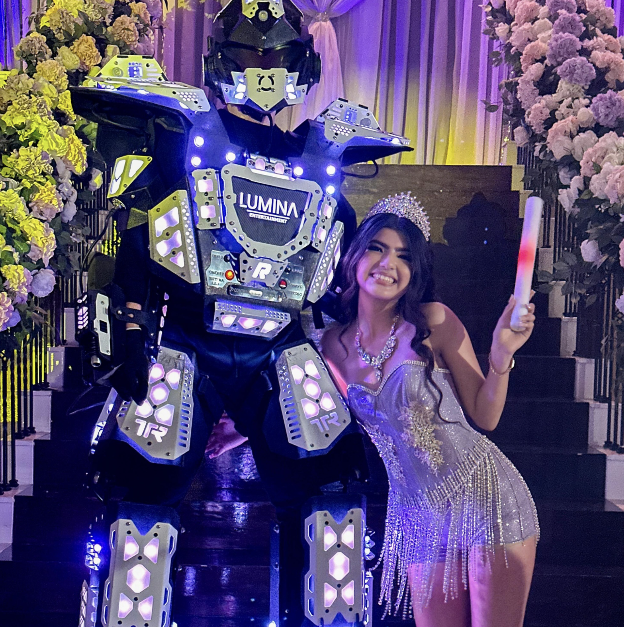 Turn heads and wow your guests with our live-action robot performer—a futuristic robot suit worn by a skilled entertainer. With glowing lights, animated movements, and real-time interaction, this robot dances, poses for photos, and keeps the crowd engaged from start to finish. Perfect for parties, brand activations, and events that need that extra spark!